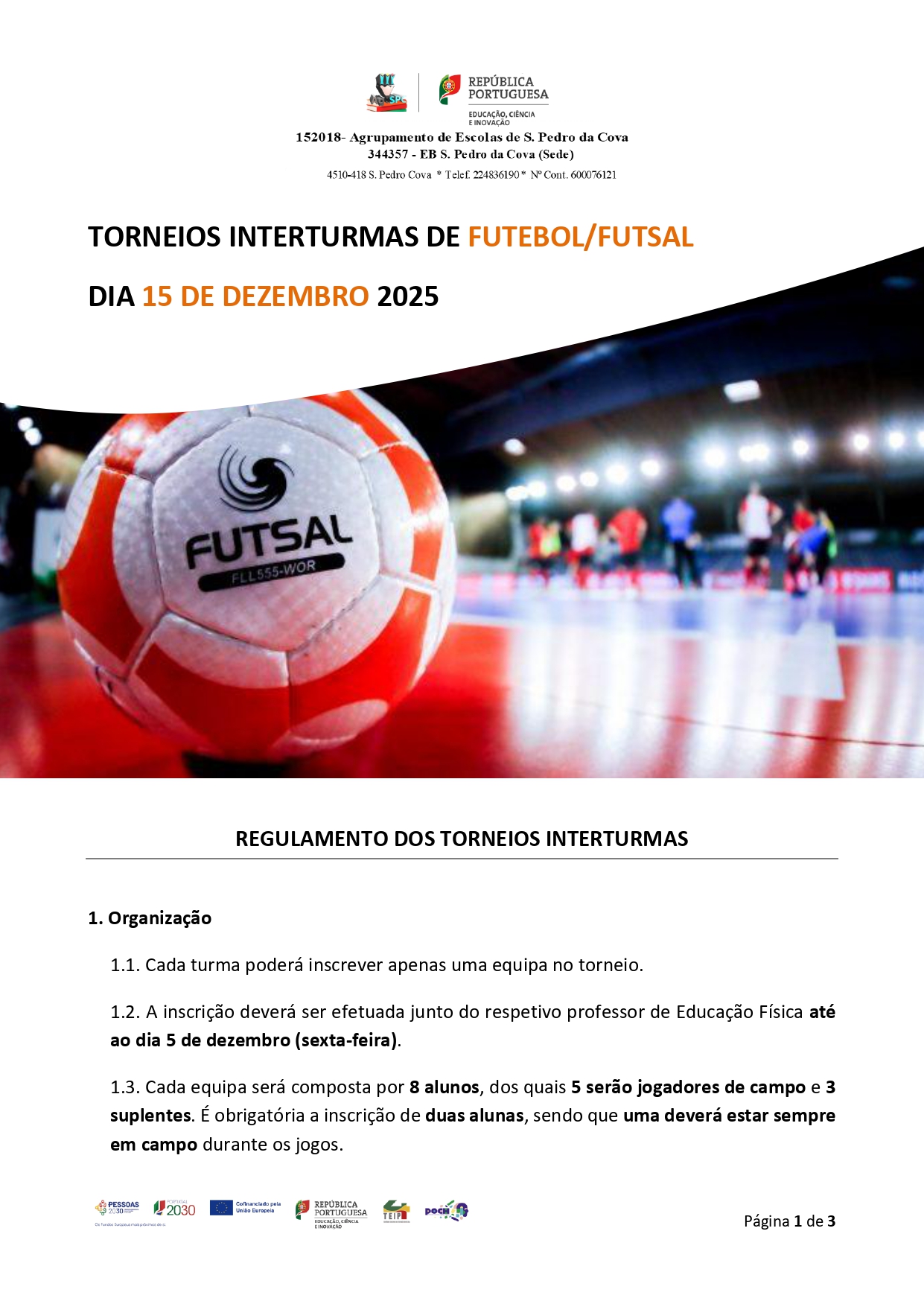 Já se encontra disponível o regulamento dos torneios interturmas de Futebol/Futsal.