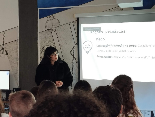 Foram debatidas as emoções, o bem-estar psicológico, e a forma como podemos alterar a situação de mal-estar através da aprendizagem de 5 estratégias essenciais. No final, os alunos efetuaram um registo das ideias e perceções que construíram em si mesmos ao refletirem sobre a temática.