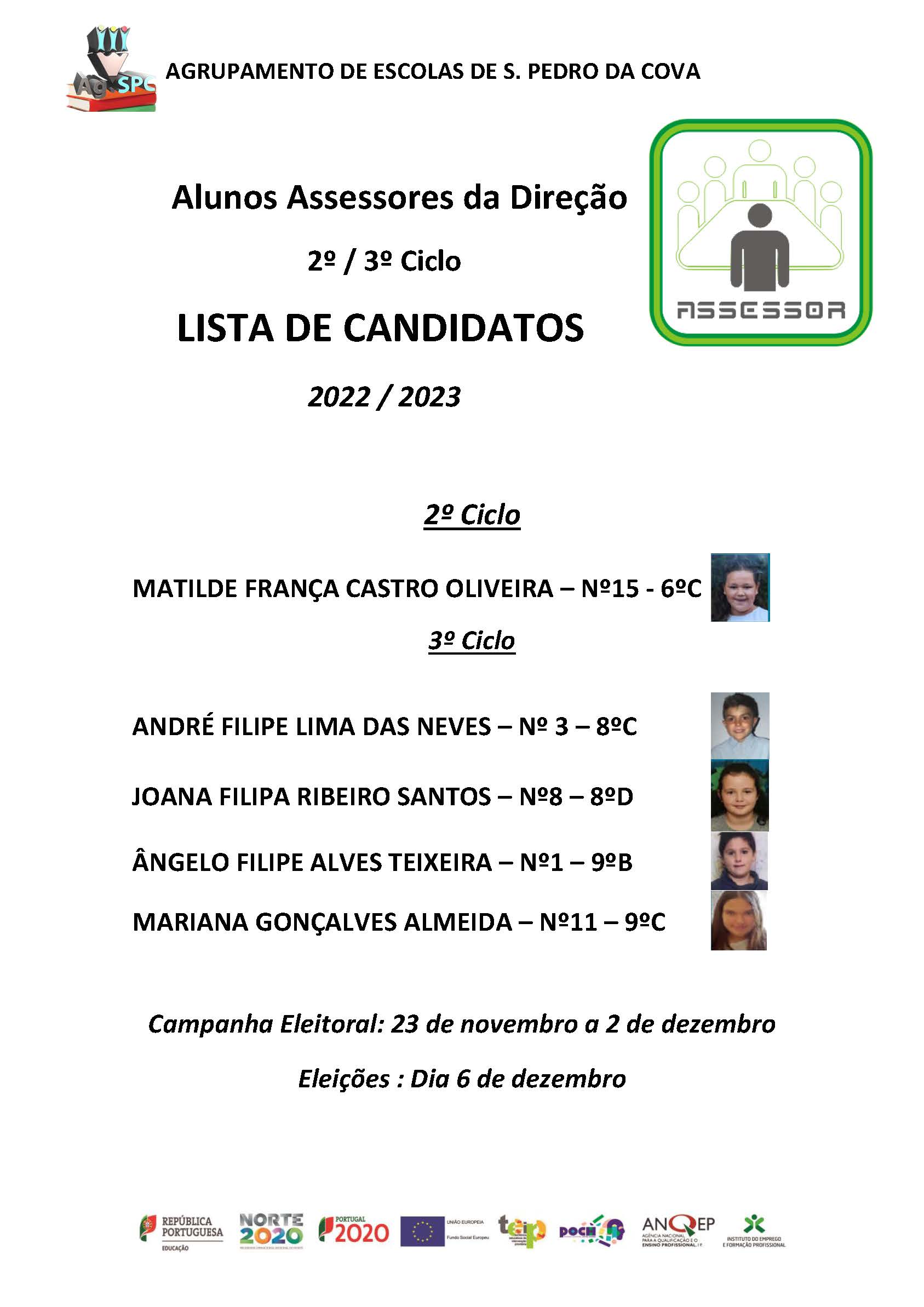 Informa-se toda a comunidade educativa que se encontra disponível a lista de candidatos a Alunos Assessores da Direção.