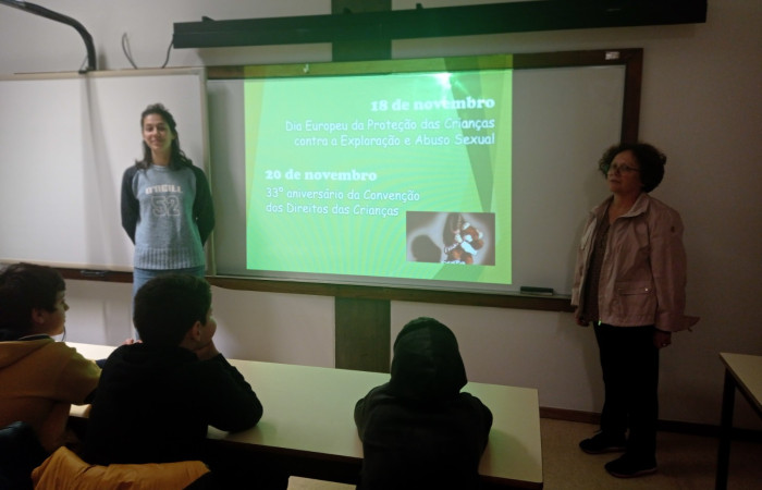 À semelhança do ano letivo anterior, o SPO/EAAF, em parceria com a CPCJ-Gondomar realizaram um conjunto de ações de sensibilização e de prevenção às turmas de 5.ºB e 5.ºE, no âmbito do "Dia Europeu da Proteção das Crianças contra a Exploração e o Abuso Sexual" que se assinala a 18 de novembro. As sessões decorreram no dia 22 de setembro e foram dinamizadas pela Professora Isabel Soares, com a colaboração de uma estagiária do curso de Criminologia, em representação da CPCJG.