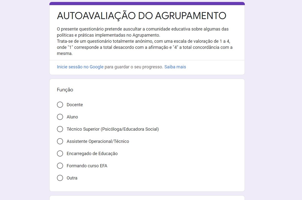 Com este inquérito pretende-se auscultar a comunidade educativa sobre algumas das políticas e práticas implementadas no Agrupamento.