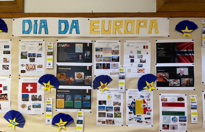 No âmbito da comemoração do Dia da Europa, 9 de maio, o grupo de Geografia expôs os trabalhos sobre os países da Europa “Cartão de Cidadão, à Descoberta do Mundo“ - realizados pelos alunos do 7.º ano de escolaridade.