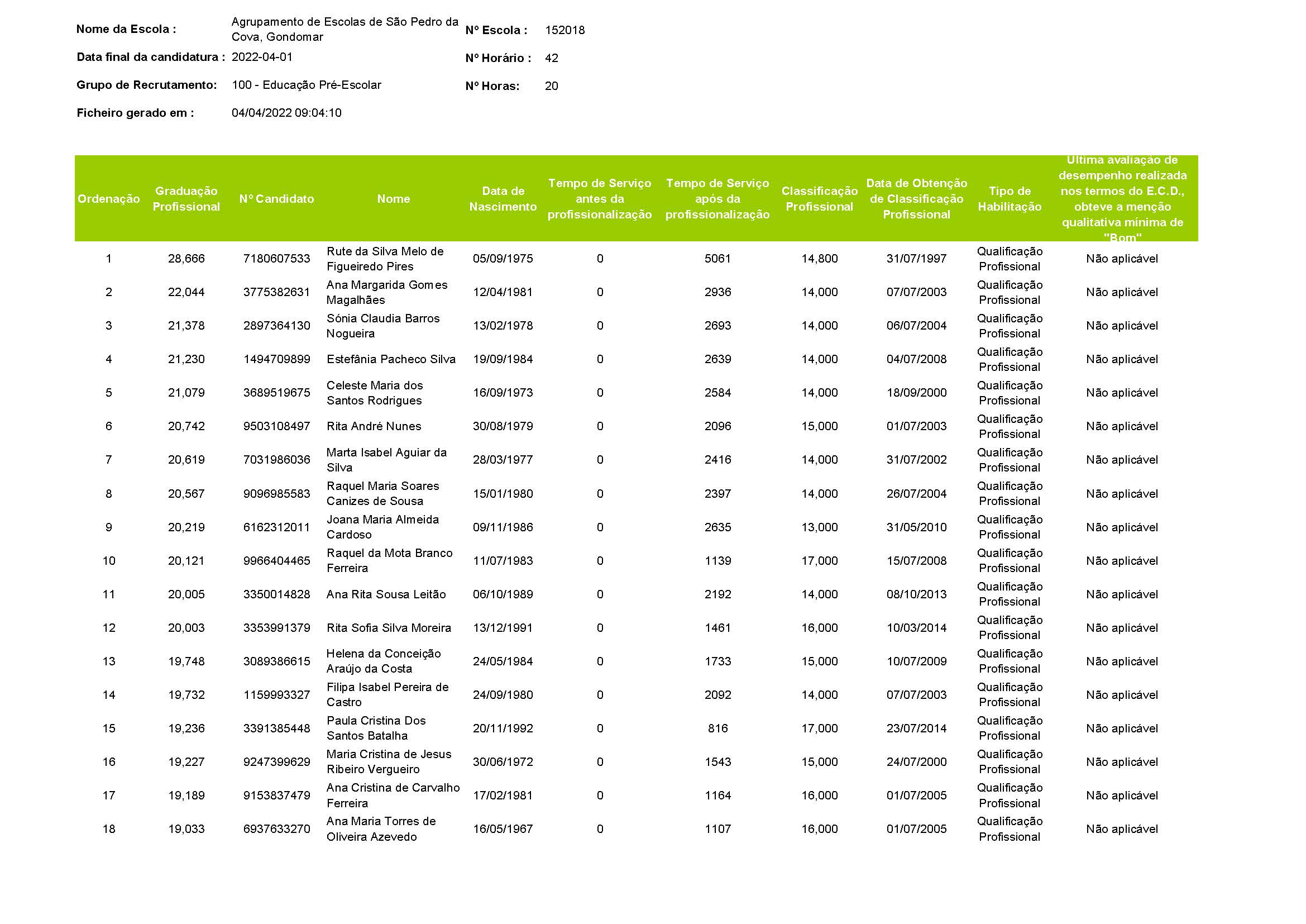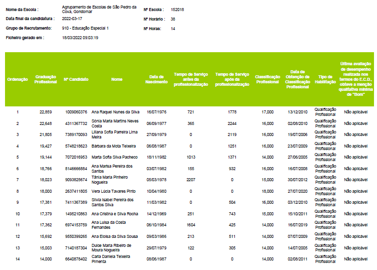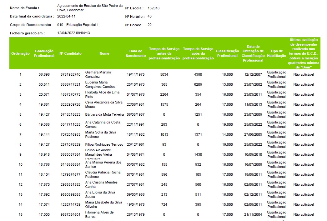 Já se encontra disponível a lista ordenada de graduação para o grupo 100 - Educação Pré-Escolar.