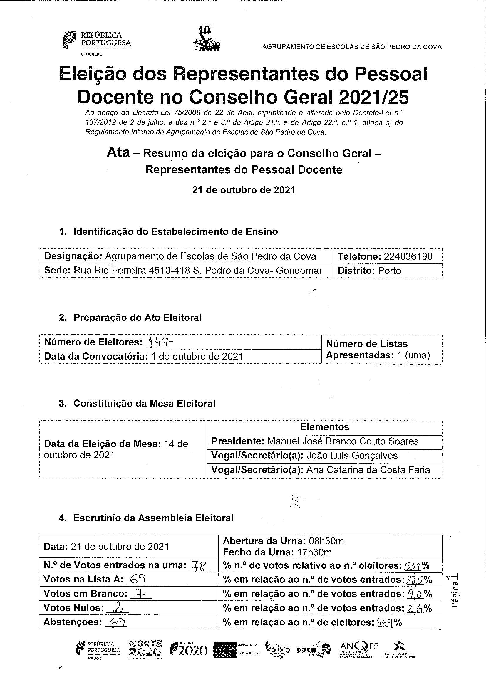 Ata da Eleição dos Representantes do Pessoal Docente para o Conselho Geral 2021/2025