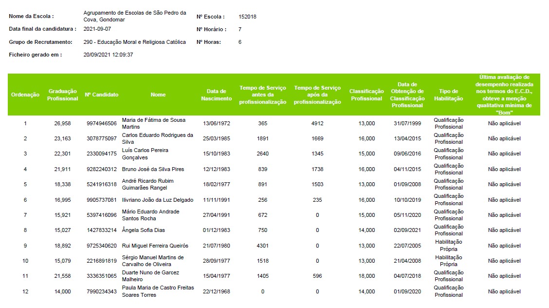 Já se encontra disponível a lista ordenada de graduação para o grupo 290 - EMRC.