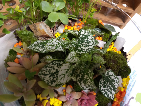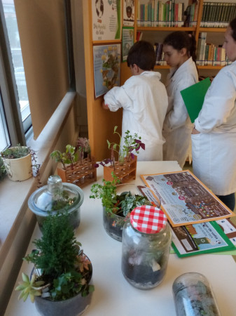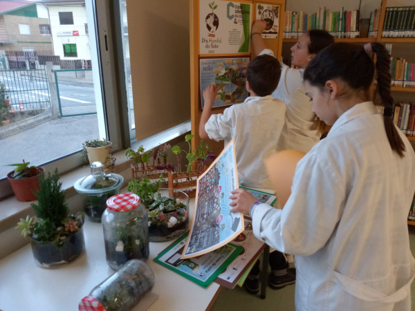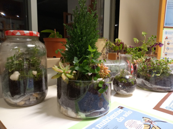 Nesta pequena exposição, a Comunidade Escolar pode apreciar, por exemplo, terrários e mini jardins construídos com material de laboratório pela Equipa do Clube Ciência Viva na Escola. Pode, ainda, encontrar infografias com diversas curiosidades como, por exemplo, as funções do solo, o mundo escondido sob os nossos pés, os nutrientes do solo, os solos afetados por sais (solos saudáveis, solos salinos e solos sódicos) e a biodiversidade do solo como solução baseada na natureza.