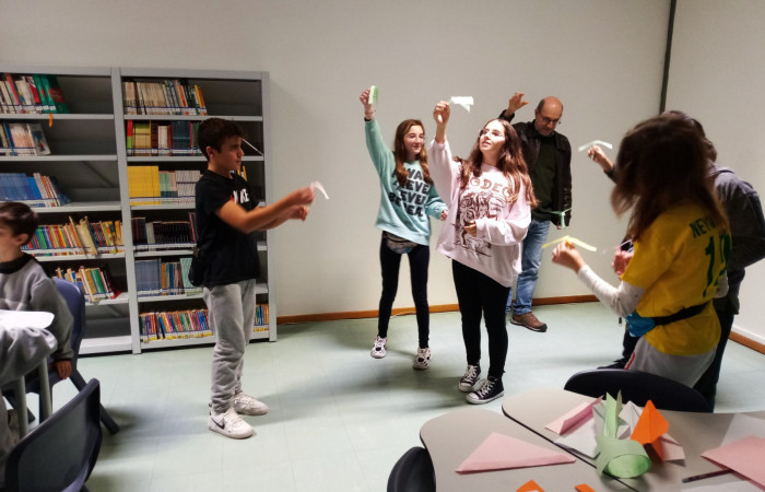 Durante a manhã de 24 de novembro, a Ciência e a Tecnologia invadiram a Biblioteca Escolar e os alunos inscritos nesta Oficina STEAM andaram às voltas com a construção de diversos planadores. Foi uma manhã repleta de desafios curiosos e divertidos, onde a concentração e a destreza foram colocadas à prova. Afinal, para um avião voar precisa de um motor e de asas! Mas, para que serve cada um destes componentes? Que forças atuam sobre um avião? As forças da gravidade, sustentação, impulso e o atrito (resistência do ar) dificultam o controlo do voo. Como o piloto controla a direção e a velocidade de um avião? O que é e como voa um planador? Estas e outras questões motivaram a curiosidade, o interesse, o empenho e o entusiasmo de "Jovens Exploradores da Ciência e da Tecnologia", que brilhantemente superaram os desafios propostos.