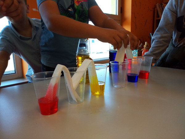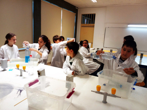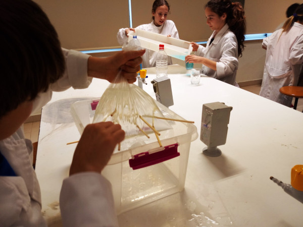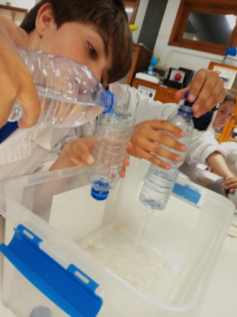 Foi uma curiosa viagem pelos fluidos, onde a água líquida e o ar atmosférico foram os principais protagonistas. A água cobre mais de 70 % da superfície da Terra. Foi na água que a vida na Terra começou, pelo que não é surpreendente que todos os organismos que vivem no Planeta Azul necessitem de água. A água é, de facto, uma necessidade vital, um habitat, um recurso local e global, um corredor de transporte e um regulador do clima. A água existe de várias formas no seu próprio ciclo ou em ciclos criados através do engenho humano. Por que todas as nossas ações têm uma pegada hídrica associada, os “Pequenos Cientistas”, através do cenário de aprendizagem não formal criado pelo Clube CVnE, além de experienciarem o “Princípio dos Vasos Comunicantes” e o fenómeno da capilaridade (e respetivas aplicações no quotidiano/natureza) são sensibilizados para a disponibilidade deste bem essencial à vida e a desenvolver hábitos e comportamentos sustentáveis para que hoje, como ontem, continue a haver água!