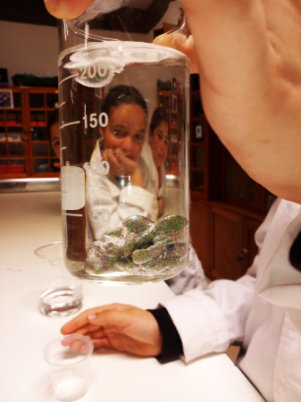 A Alquimia era um conjunto de práticas e conhecimentos empíricos profundamente impregnados de alegorias, segredos, superstições e magia. Por exigir constante manipulação de materiais, aproximava-se muitas vezes da experimentação científica, como a entendemos atualmente. Eram dois os principais objetivos dos Alquimistas ou, pelo menos, da maioria deles: a transmutação de metais comuns (estanho, chumbo, cobre) em ouro, para o que buscavam um misterioso ingrediente, a “pedra filosofal”; e a descoberta de uma substância capaz de curar todas as doenças e de conferir a vida eterna, ou seja, o “elixir da longa vida”. A conversa desta tarde no Clube CVnE foi, assim, bem interessante e repleta de entusiasmo. A curiosidade e as expectativas (do que iria acontecer no laboratório) dos “Jovens Exploradores da Ciência” foram ao rubro e o desafio estava na mesa de trabalho! Preparar e organizar os materiais/equipamentos de laboratório e reagentes químicos necessários para transformar moedas de um cêntimo em moedas de “prata” e de “ouro”. Cumprir as regras de segurança e meter “as mãos na massa”.