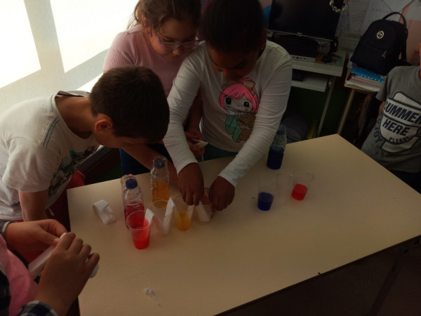 Nas mesas de trabalho, os “Exploradores da Ciência” encontravam “Snacks de Ciência” para todos os gostos e os desafios tinham de ser superados. Das “flores de papel que desabrocham em água”, passando por “segurar água com peneira” e “segurar água com papel, “água elástica”, “estrela que bebe água”, “garrafa furada”, “espetada de água em saco”, “copos de água invertidos”, “gotas de água numa moeda” e “areia com medo de água”, nenhum “Snack de Ciência” ficou de fora para celebrar o Dia Mundial da Água.