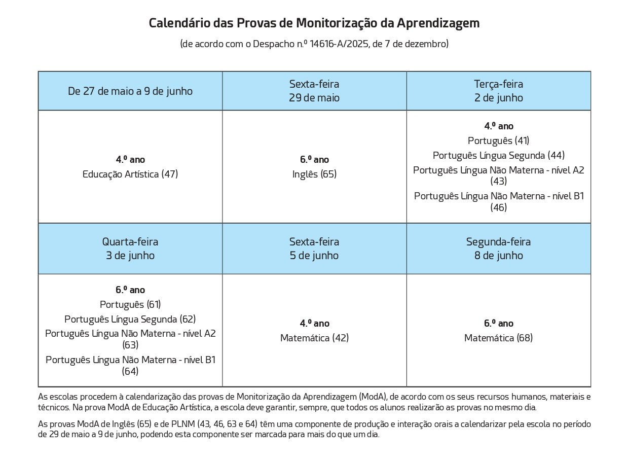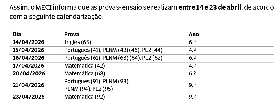 NOVO CALENDÁRIO DAS PROVAS-ENSAIO 2025/2026